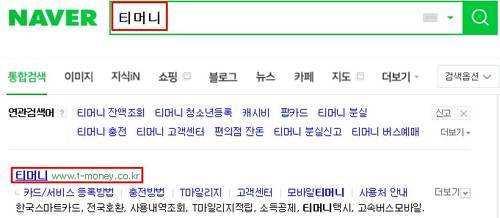 먼저 티머니 청소년등록을 하기 위해, 포털사이트에 티머니를 검색하고 티머니 홈페이지에 접속합니다.